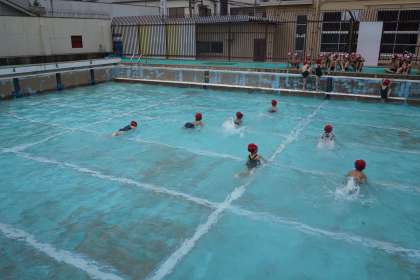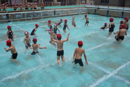 初めての小学校のプールに子どもたちも大はしゃぎです。