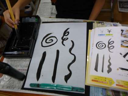 「鉛筆で書くより難しい」「線がうまく書けたよ」など