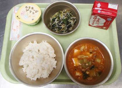 とうふの四川風は,トウバンジャンを使った,ぴりっと辛いとうふ料理です。暑さが増してくるこの時期にぴったりの献立です。