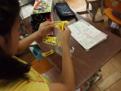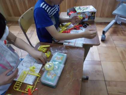 理科では「電池のはたらき」の単元がスタート。実験がスムーズにできるように,まずは導線やスイッチを準備しました。話を聞いてするのではなく,自分たちで説明書を見て作り上げることができました。