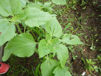 北かだんで育てている「ホウセンカ」と「ヒマワリ」が以前より大きく育っています。