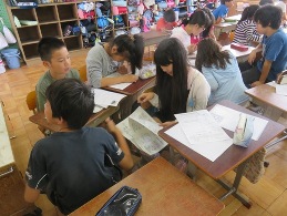 来週たてわり遊びがあります。それに向けて6年生は縦割り遊びでどんな遊びをするのか1年間の計画を立てました。どんな遊びがいいのか,同じグループの人と相談しながら考えていました。