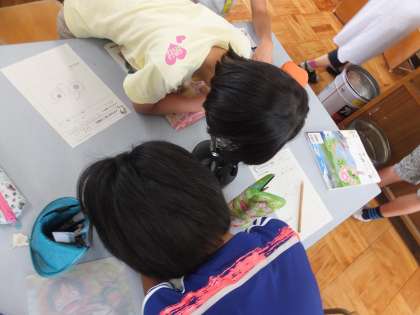 理科の学習でメダカの誕生について学習をしています。教室前の廊下で育てているメダカがたまごを生みました。