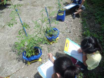 子ども達が一生懸命に育てているミニトマトがぐんぐん大きくなってきました。