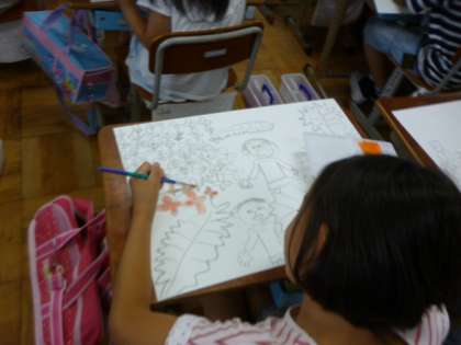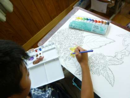 赤 青 黄の3色だけをパレットに出して色をつくりました。