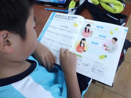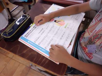 音楽科では「いろんな木の実」を歌いました。楽譜にはリピートの記号がいくつもあり,正しい順序で歌うのが難しい曲です。歌っている所を指で指しながら,どういった順序で歌えばよいのかを確かめました。