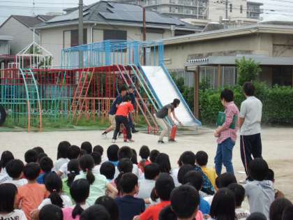 6月24日(金)に火災の避難訓練を行いました。火災が起きた時にどのように避難するのかを確かめ,実際に訓練をしました。火災が起きたと分かったらすぐに窓を閉め,カーテンを開ける。ハンカチなどで口を押え,低い姿勢で避難するなど,基本を守って素早く避難することができました。