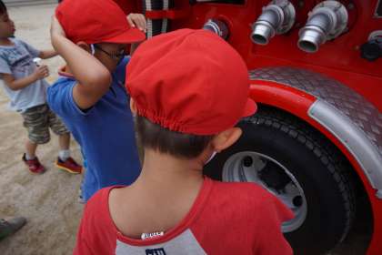 消防士さんに質問している子もいました。