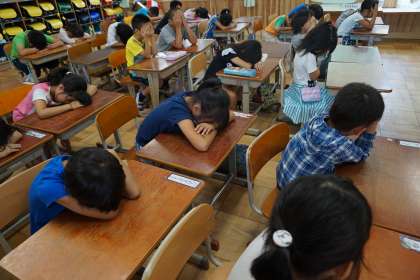 写真は質問をしていって答えを考える「20のとびら」のゲームをしている様子です。