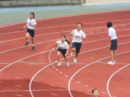西京極陸上競技場で行われた日新カップに参加しました。6年生は,女子が100メートル×4のリレーに参加しました。これまで,バトンパスの練習やスタートの練習を行ってきました。本番では,練習の成果を発揮することが出来ました。