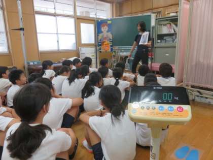 保健室で体重測定がありました。体重測定の前に便やトイレの使い方などの話がありました。便は自分の体の健康を知る大切なものです。早寝,早起き,朝ごはんの習慣は大切ですね。