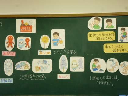 7月1日(金)のにこにこの日では,血えきとけがの手当てについて学習をしました。