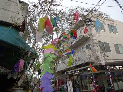 クラスで作った笹飾りが吉祥院商店街に飾られました。