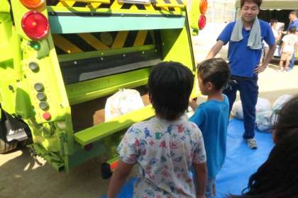 クイズやビデオなど楽しんで学習を進めることができてきましたが,子どもたちが一番喜んでいたのは,パッカー車を見れたことです。実際にパッカー車にゴミを入れて動かすなど日頃はできない経験をさせてもらうことができました。