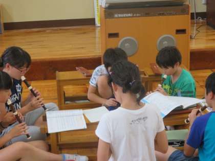 音楽の学習でラバース コンチェルトの合奏の練習をしています。「パートの役割を考えよう」を参考にそれぞれのパートの役割について知りました。各グループごとに練習をがんばっています。