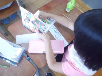 子ども達は,短冊をもらい,自分の願い事をかきました。