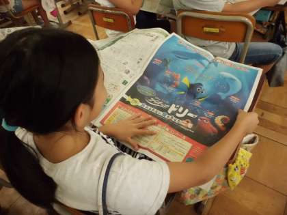 国語科「調べたことを整理して書こう」では,新聞づくりに挑戦します。まずは,新聞を読んで興味がもてる記事探し。小学生新聞をめくっていく中で,新聞って面白い!ということに気づくことができました。