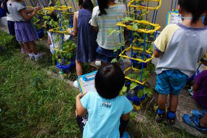 生活の時間で花の数やつぼみの数を数えたり,あさがおの様子を絵に描いたりしました。