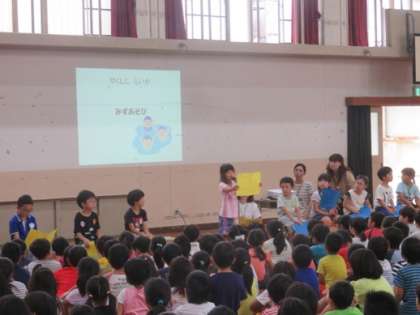 今回吉祥院タイムの発表は1年生でした。「みずあそび」,「うたをうたうこと」,「ほんをよむこと」など自分が好きなことについての発表でした。1年生がどんなことを話すのか楽しみながら聞いていました。発表後,子ども達は,1年生に向けて手紙を書きました。