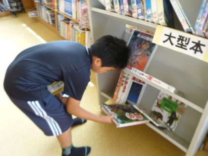 3年生も図書館で本を探していました。