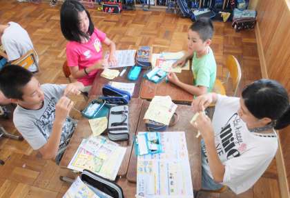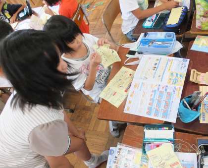 「玉止めがうまくできるようになった」「なみ縫いがまっすぐきれいにぬえてる」など,うまくぬうことができ,自信をつけて楽しく作業する子が増えてきています。