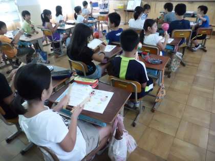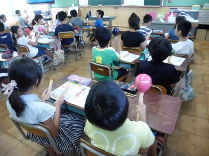 音楽科では「いろんな木の実」の歌にマラカスやギロ,クラベスといったリズム楽器を加えて歌いました。リズムを体全体でとりながら,ノリノリで歌っている子も見られました。