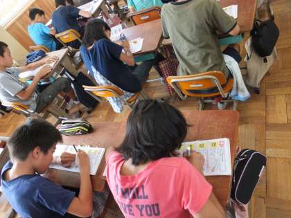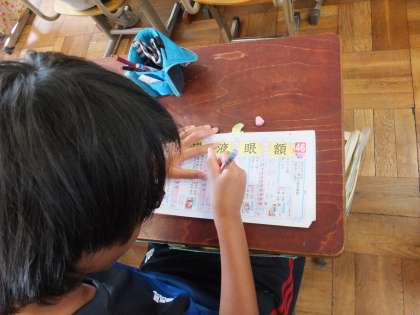 5年生で習う漢字をコツコツ練習しています。書き順や漢字の意味,単語などを知って覚えていきます。練習時間は集中して学習をしています。
