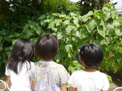 北花壇で育てている『ヒマワリ』が大きく成長しています。