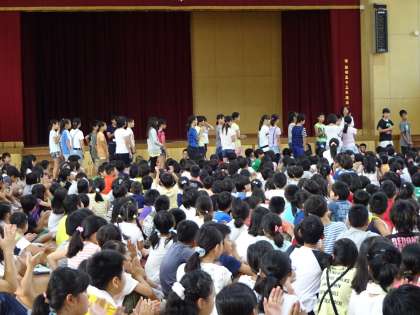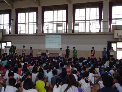 朝会では校長先生のお話や夏休みのくらしについてお話しましたが,その他にも放送委員会からの発表や良い歯の表彰が行われました。