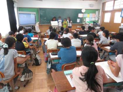 総合的な学習の時間に自分達が知っている京都の魅力について発表しました。まず,自分が知っている京都の魅力を付箋に書いてグループ分けをしました。グループ分けを見てみると京都の伝統的な行事,寺社,食べ物などでした。最後に班でまとめたものを発表しました。