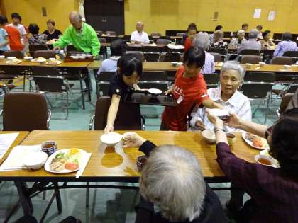 楽しい交流のあとは,お食事の配膳のお手伝いをしました。
