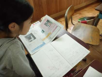 国語科「調べたことを整理して書こう」では,出来上がった新聞を読み合い,感想を交流しました。見出しのつけ方や写真の選び方など,友だちのいいところを見つけてノートに書き込んでいきました。