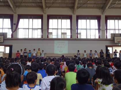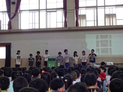 月曜日の1時間目に朝会が行われ,環境委員会と図書委員会からの発表がありました。