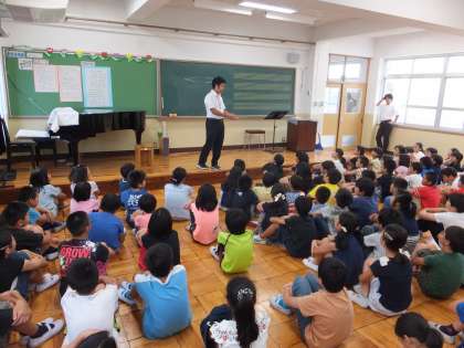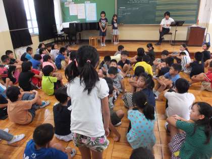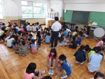 10月に行われる長期宿泊学習に向けて,5年生で学年集会を行いました。まず山の家のでの活動予定を確認しました。山登りや野外活動や魚つかみ等の活動,食堂や宿泊場所など,実際の写真を見て,楽しみが増えたようです。