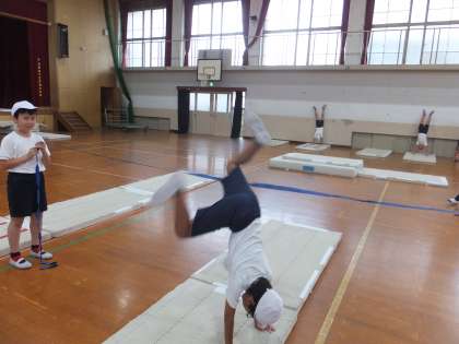 翌日には筋肉痛になりながらも,できる技を増やそうと,友だちと技の出来栄えを伝えあい,楽しみながら学習を進めています。