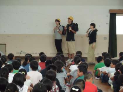 9月5日(月)の朝会では,よりよいあいさつについて考えました。2人の先生が子ども役になり切っての寸劇に,多くの子が釘付けに。どんな挨拶がいいのか,楽しく考えることができました。