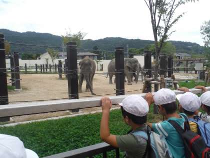 ぞうの大きさにびっくりしている子ども達がたくさんいました。