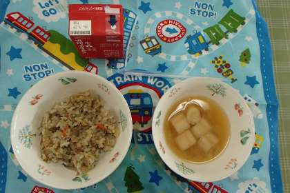 たきこみごもくごはん(とりごぼう)がおいしかったです。もぐもぐたべてとてもおいしかったです。みんなでたべたほうがおいしかったです。みそしるもおいしかったです。