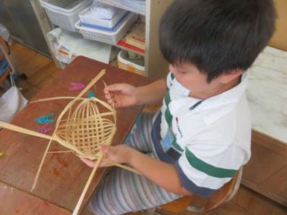 最初は難しかったようですが,子どもたちは次第にやり方がわかってきました。少しずつ完成に近づいています。