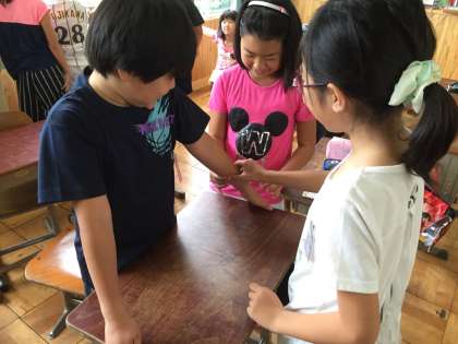 理科の「わたしたちの体と運動」の単元で、どんなことをした時に、腕のどの辺り(の筋肉)が硬くなるのかを調べました。腕相撲をした時。重い物を持った時。腕で体を支えた時など、様々な場面と腕の筋肉のつながりについて、楽しく学習することができました。