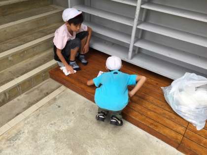 これまで使ってきた部屋や廊下,バンガローを自分たちできれいにしました。来た時よりも美しくという気持ちを持って清掃活動に取り組みました。