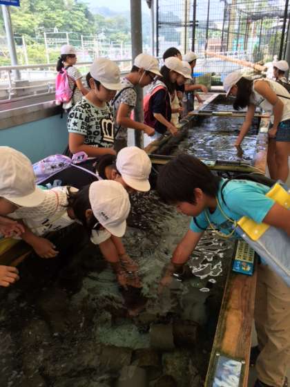 魚に触れることができるコーナーです。「ヌルヌルや!」と普段触らない感触に喜んでいました。