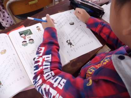 国語科では「漢字しりとり」にチャレンジしました。漢字しりとりとは「気候→工事→時期→器官」というように,熟語の後の漢字の音を使って,次の熟語につなげるというものです。「合体→□□→用紙」といった問題にチャレンジし,早くクリアできた子どもたちは,問題作りにも取り組みました。