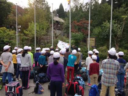 無事山の家につきました。入所式で山の家の先生からお話をいただき,これからの活動がとても楽しみな様子でした。