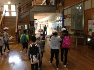 これから館内ウォークラリーを始めます。山の家の本館や宿泊棟など,利用する場所をグループごとに回ります。