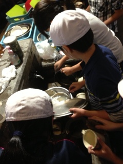 子ども達とても頑張って片付けをしています。来た時よりも美しくにしっかり取り組んでいます。