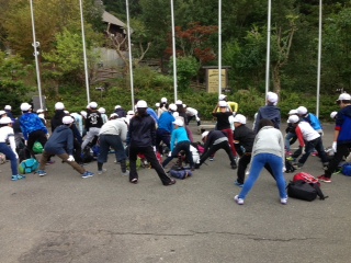 いよいよ登山です。新しく到着された先生たちとともに,気合をいれて出発式を行いました。