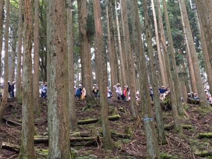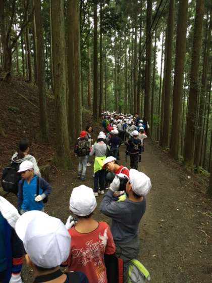 二回目の休憩です。みんな「ガンバー!」「ファイトー」など,たくさんの励ましの声を掛け合って山登りしてます。