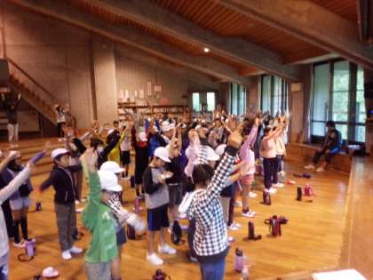 4日目は,これまで過ごした山の家に感謝の気持ちをもって掃除をしたり,思い出刻む花背焼きつくりをしたりします。ここまでお世話になった先生にもお礼を伝えました。4日目で疲れている子もいますが,体操をして,気分がスッキリしたようです。