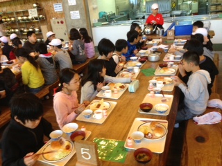 山の家での最後の朝食です。ミートボールを20個食べた子やパンを6個食べた子など,食欲は衰えないようです。しっかり食べることができました。